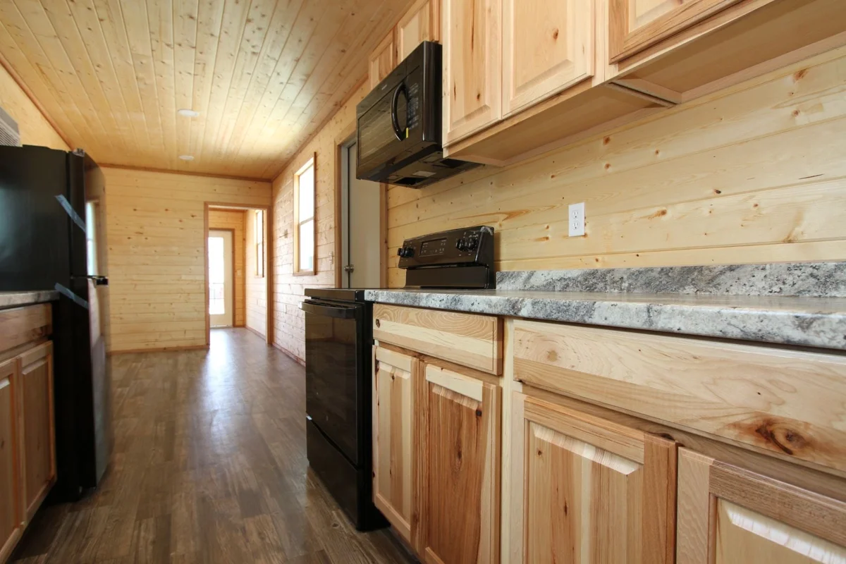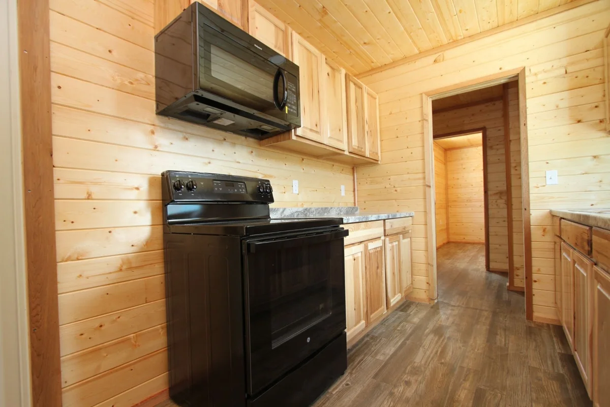 Comprehensive Electric Package: Includes a 200 Amp service panel, interior LED can lights, an exterior LED floodlight, and multiple outlets for all your electrical needs.