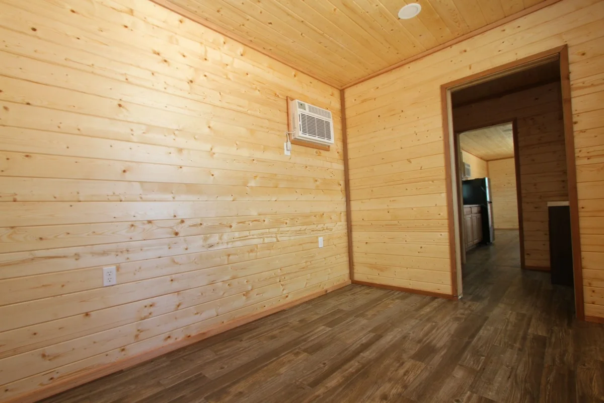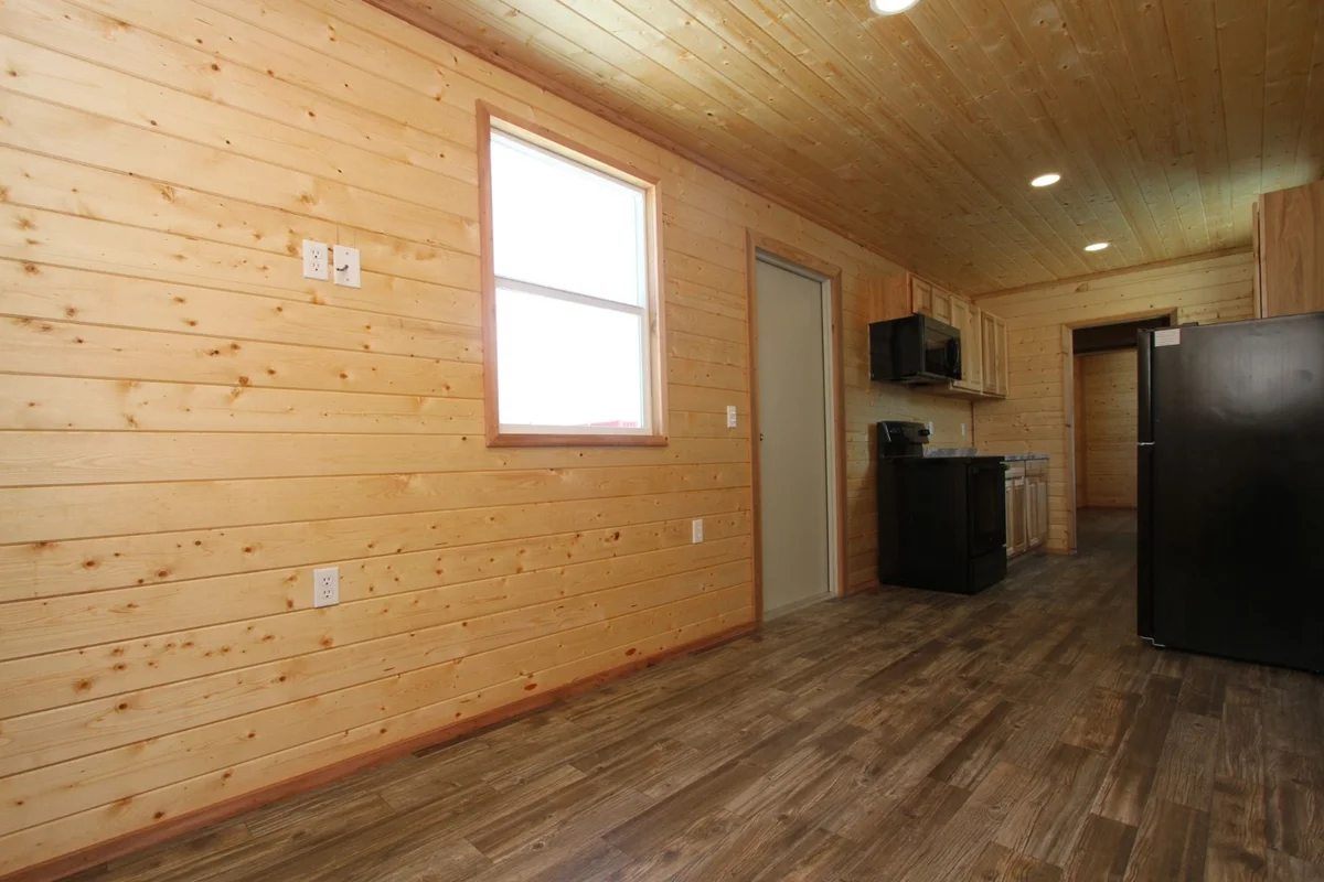 Rustic Interior Finish: Interior framing, pine plank siding, and cedar trim create a warm and inviting atmosphere.